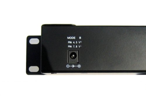 Vstup pre napájanie prostredníctvom dvoch 2.1mm 60V jackov, z oboch vstupov je vždy zároveň napájaných všetkých 12 portov v režime podľa zvoleného A/B vstupu: