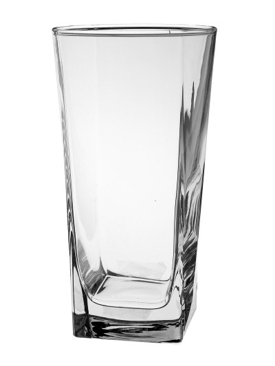 Súprava pohárov CARRE long drink. Poháre sú vyrobené z číreho skla, vrchná časť je guľatá, dno hranaté.