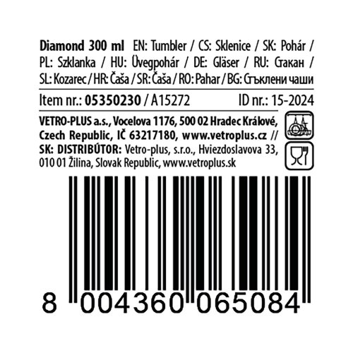 Pohár DIAMOND je vhodný na podávanie najmä studených nápojov. Pohár je vyrobený z kvalitného skla a je vhodný do umývačky riadu.