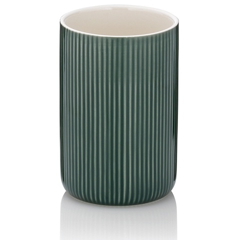 Farebný, veselý akcent do každej kúpeľne: kelímok na zubné kefky AVA v pútavej alpskej zelenej s bielym keramickým vnútorným povrchom. Mydelnička má rozmery: výška 10,5 cm, 7,5 cm Keramická 7,5 cm, 10,5 cm v