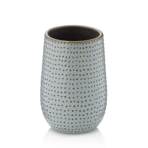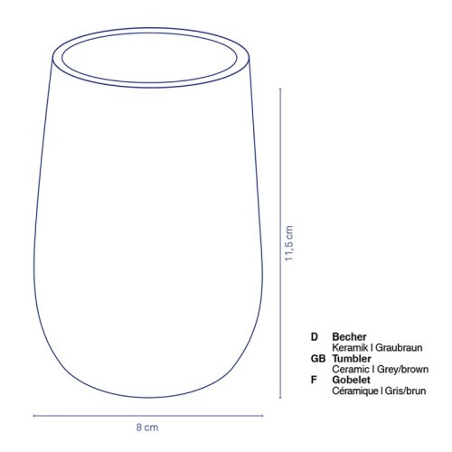 Špeciálny kúpeľňový pohoár zo série Dots. Vizuálne šedohnedý exemplár je niečím výnimočný. Takzvané bodky sú vystúpené a sú teda cítiť, keď hrnček držíte v ruke. Rozmery: výška 11,5 cm, priemer 8,0 cm Keramický, lesklý, 8 cm, v. 11,5 cm