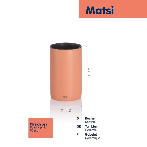 Dodajte vašej kúpeľni farebný a veselý akcent s kelímkom na zubné kefky Matsi. Tento pútavý kúsok v broskyňovo ružovej farbe s bielym keramickým vnútorným povrchom okamžite upúta pozornosť.