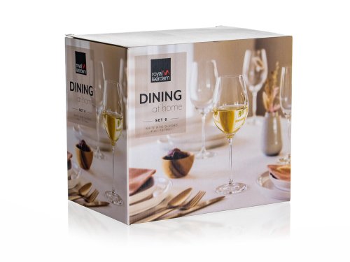 Pohár DINING značky ROYAL LEERDAM na biele víno. Veľmi kvalitné sklo holandskej výroby. Tvrdený okraj skla zaisťuje odolnosť a dlhú životnosť.