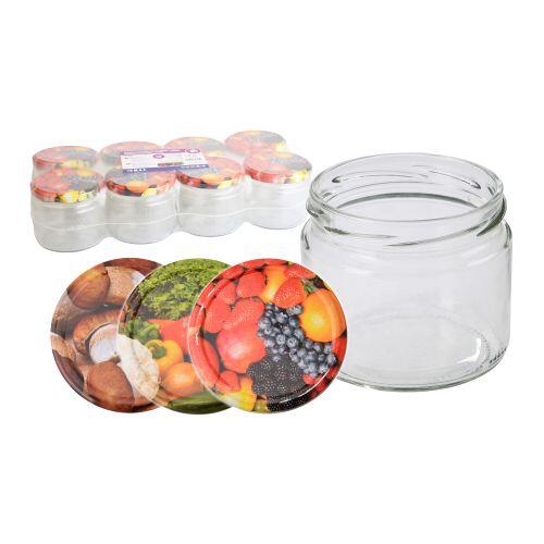 Zavárací pohár TWIST 82, 330 ml, s viečkom mix dekorov, sa používa na konzerváciu menšieho množstva potravín.