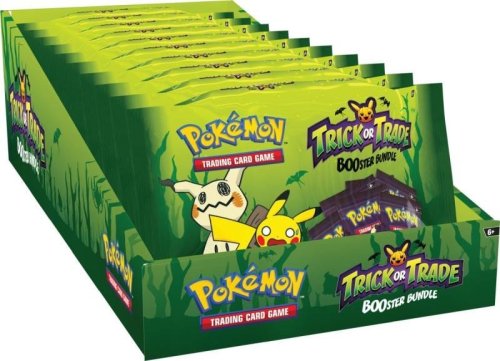 Uži si zábavu nielen počas najstrašidelnejšej noci roka s balíčkom Pokémon TCG: Trick or Trade booster bundle! Vnútri nájdeš 50 mini balíčkov, z ktorých každý obsahuje tri karty z kartovej hry Pokémon Trading Card Game.