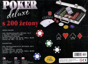 Hra obsahuje: 200 žetónov 11,5 g, 2 balíčky kariet, 5 červených kociek, žetóny Dealer, Small a Big Blind, 1 pravidlá hry (CZ, SK a PL)