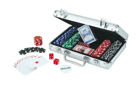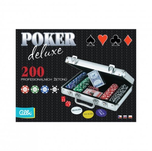 Klasický pokrový hliníkový kufrík v striebornej farbe, ktorý obsahuje 200 kvalitných 11,5 gramových žetónov, 2 balíčky kariet a 5 hracích kociek. Kufrík je vhodný pre pokerový variant Texas Hold'em.