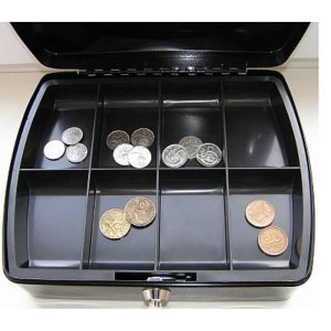 • praktická, ľahká, uzamykateľná pokladňa s pevným madlom pre ľahké prenášanie