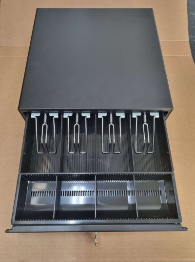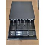 Pokladničná zásuvka FEC POS-330 má flexibilné zásobníky na mince , štyri kovové klipsy na bankovky a dve predné externé priehradky pre šeky/kupóny či kreditné karty. Uvoľnenie zásuvky má na starosť mechanizmus na zámok s kľúčom. Toto veľmi kvalitné zariadenie s kompaktnými rozmermi, má životnosť cez milión operácií. Kovová zásuvka v elegantnej čiernej farbe vás prekvapí nízkou hmotnosťou.