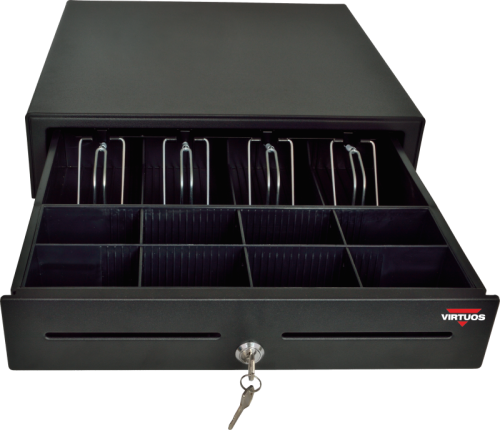 * Výmenný zakladač so 4 kovovými držiakmi bankoviek * Vyberateľný mincovník s 8 zásobníkmi mincí * Otváranie zásuvky: mechanicky kľúčikom alebo elektronicky * Elektronická kontrola otvorenia zásuvky (tzv. microswitch) * Mechanicky odolná konštrukcia * K dispozícii ako ďalšie príslušenstvo náhradný zakladač a kov