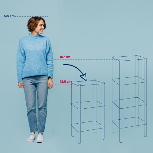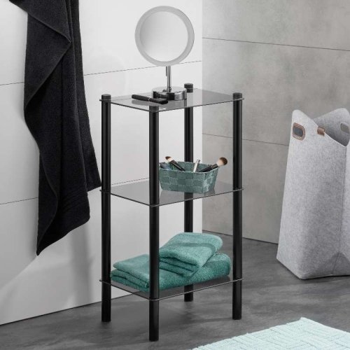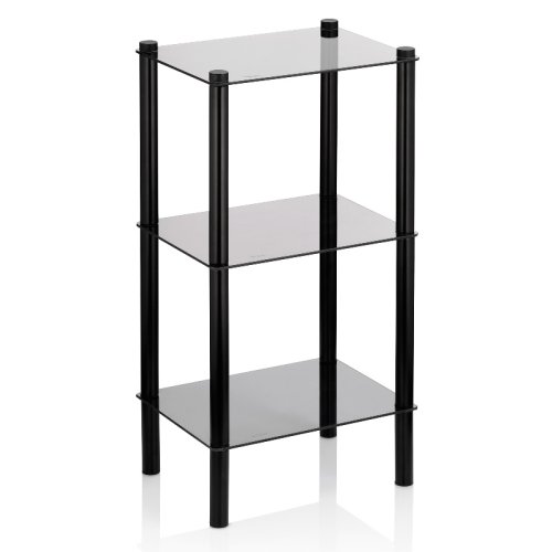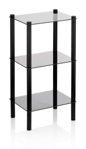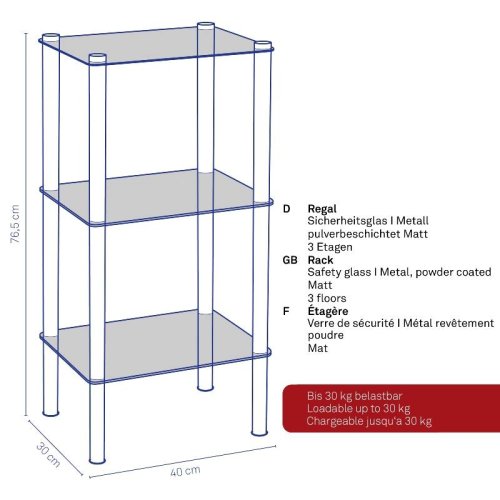Jednoducho šik: Čierna verzia police LARS je vyrobená z kovu s práškovým nástrekom. Nie je príliš veľký a možno ho teda flexibilne použiť v obytnej časti. Má 3 poschodia z bezpečnostného skla. Polica je 76,5 cm vysoká, 40 cm dlhá a 30 cm široká. Kovové matné bezpečnostné sklo s práškovým nástrekom 3 poschodia 40x30cm 76,5cm v