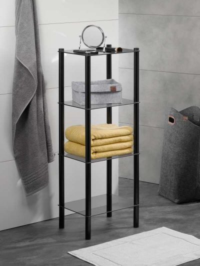 Jednoducho šik: Čierna verzia police LARS je vyrobená z kovu s práškovým nástrekom. Nie je príliš veľký, a preto ho možno flexibilne použiť v obytnej časti. Má 4 poschodia z bezpečnostného skla. Polica je 107 cm vysoká, 40 cm dlhá a 30 cm široká. Kovové matné bezpečnostné sklo s práškovým nástrekom 4 poschodia 40x30cm, 107cm v