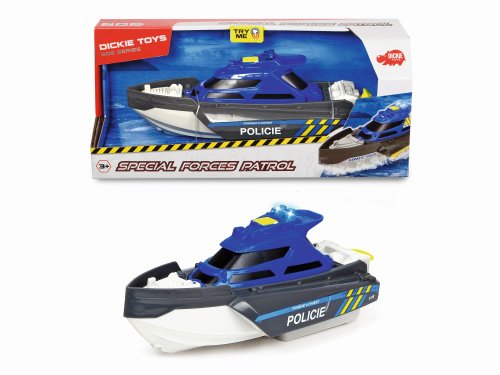 Policajná loď so svetelnými a zvukovými efektmi, naťahovanie na šnúrku. Veľkosť 24 cm, mierka 1:24. Slovenská verzia.