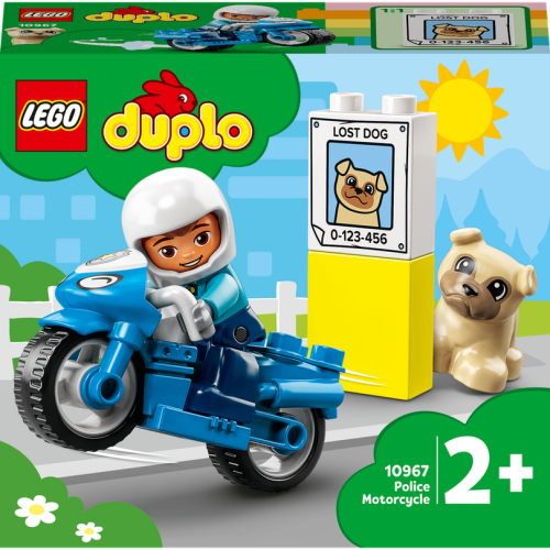 Kreatívna súprava Policajná motorka (10967) od LEGO® DUPLO® pomáha hravou formou rozvíjať dôležité schopnosti a urobí radosť všetkým predškolákom od 2 rokov, ktorí sa zaujímajú o prácu u polície, parádne motorky a radi sa starajú o zvieratká.
