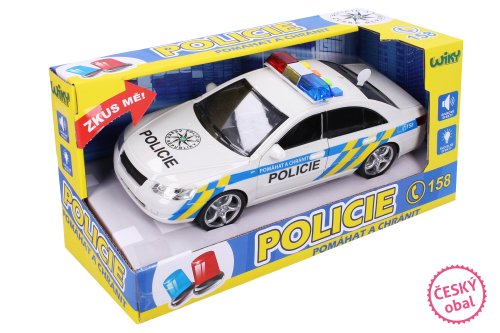 Policajné auto (český design). Veľkosť 24 cm. BO so svetelnými a zvukovými efektmi. 3xAG13 batérie súčasťou.