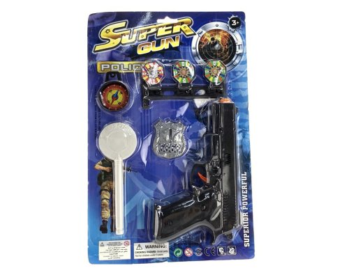 Sada pre malé policajtov. Súčasťou sady je pištoľ, odznak, placackou, terčíky a buzola. Vhodné pre deti od 3 rokov.