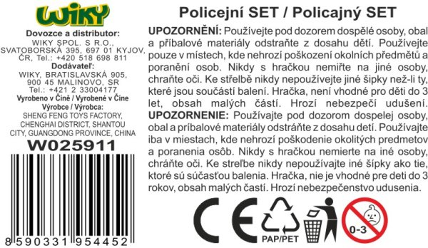Policajný set. Obsahuje pištoľ, 3 náboje, puzdro na náboje, obušok, putá, slúchadlá s mikrofónom.