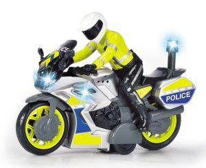 Motorka Yamaha na zotrvačník, so svetlom a zvukom, s pohyblivou figúrkou vodiča. Dĺžka 17 cm.