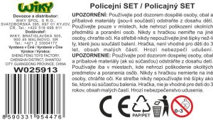 Policajný set. Veľkosť pištole 20,5 cm. Obsahuje pištoľ, 3 náboje, odznak, putá.
