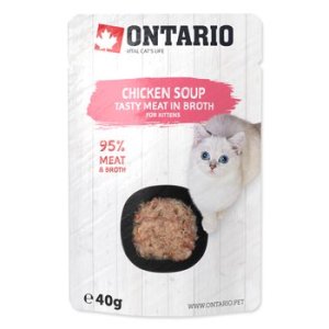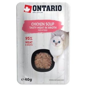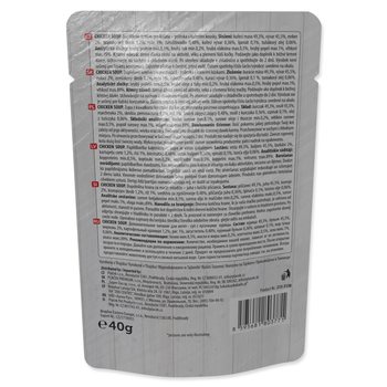 Doplnkové krmivo pre mačiatka – polievka s kúskami kurčaťa, ktorú môžete dopriať samostatne alebo ako doplnok k suchému krmivu .