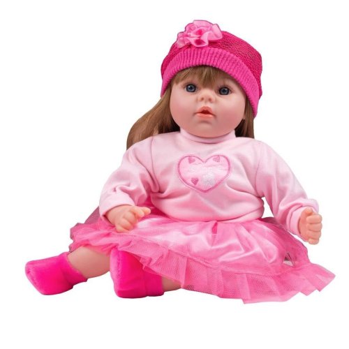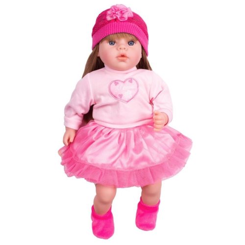 Krásna detská bábika PlayTo. Skvelá hračka pre každé dievčatko. Hlava, ruky a nohy sú vyrobené z gumy, telíčko potom z mäkkého materiálu, vďaka čomu sa môže dieťa k bábike krásne pritúliť. Bábika má celú sadu oblečenia, vrátane topánočiek a čiapočky. Oblečenie je možné zložiť a vyprať. Bábika má krásnu, usmievavú tvár, farebné oči a riasy ako u živého bábätka. Dĺžka bábiky 46 cm. Bábika má poľský modul a hovorí tieto poľské vety: mamusiu, tatusiu, tatusiu weź mnie na rączki, mamusiu kocham cię a iné. Bábika spieva tieto poľské pesničky: Jadą jadą misie, Kosi kosi łapci, Miała baba koguta, Tá Dorotka, My jesteśmy krasnoludki.