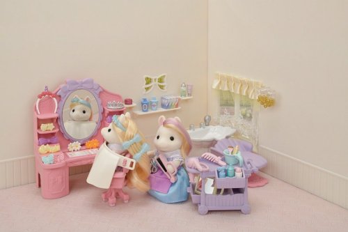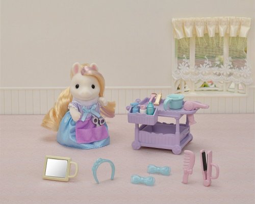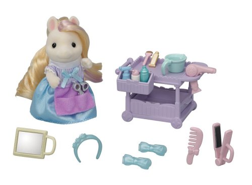 Sada Poník s vlasmi v kaderníctve obsahuje vozík, vlasové doplnky a Manely Pony matku Serafinu, kaderníčku s hodvábnymi vlasmi. Vytvárajte rôzne účesy pomocou priložených vlasových doplnkov. Všetko príslušenstvo je možné uložiť do vozíka. Nožnice a hrebeň je možné mať v kaderníckom vrecku. Figúrky môžu držať zrkadlo, sušič vlasov, žehličky na vlasy a misku. Skombinujte so sadou Kadernícky salón pre poníky (predáva sa samostatne) pre ešte viac zábavy s vlasmi a make-upom! Stimuluje nápadité hranie rolí u detí. Vek: 3+