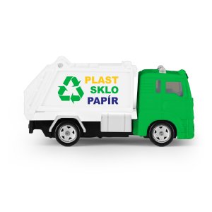 Kovové smetiarske auto s plastovou korbou má v zadnej časti odklápacie dvere. Autíčko jazdí na voľný chod a jeho dĺžka je cca 7 cm a určite poteší malých aj veľkých zberateľov.