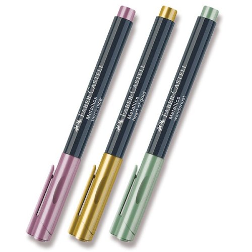 • PH neutrálny atrament bez obsahu kyselín, * atrament je odolný proti pôsobeniu slnečného žiarenia, * vodeodolný, vhodný pre savý a tmavý papier, Na použitie na papieri aj na väčšine hladkých povrchov ako je porcelán, sklo, kov či plast. Po 30 minútach v rúre pri teplote 160 ° C je vodeodolný. Nerozmazávajúce sa po papieri., Nie je potrebné trepať či pumpovať, je možné ihneď písať., ŠÍRE STOPY 1,5 MM., [FC Metalické popisovače] , Tip: Prezrite si v anglickej verzii KREATÍVNEHO KATALÓGU METALICKÝCH POPISOVAČOV FABER-CASTELL, čo všetko. sortiment pre kreatívnych amatérskych umelcov, ktorí v rámci svojich aktivít vo voľnom čase radi používajú vysoko kvalitné výrobky za prijateľnú cenu., Medzi výrobkami Faber Castell ich bezpečne spoznáte podľa modrého loga na prebale.,