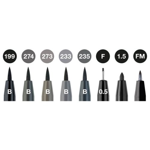 Popisovač Faber-Castell Pitt Artist Pen Black&Grey - sada 8 ks, rôzne hroty, čierny a šedý