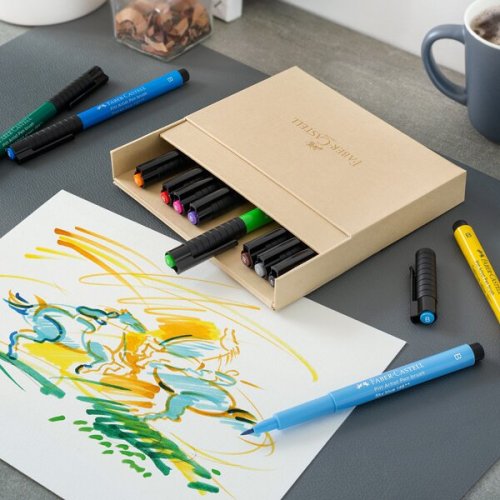 ideálny pre umelcov, grafikov, návrhárov, ilustrátorov, architektov a všetkých, ktorí radi vytvárajú farebné výkresy, * PH neutrálny atrament bez obsahu kyselín, * atrament je odolný proti pôsobeniu slnečného žiarenia, * po zaschnutí vodeodolný, nerozmazávajúci sa na papieri, * kvalitný štetčekový hrot zaručuje maximálny akosti, TIP: K umeleckým popisovačom môžete potrebovať aj špeciálny papier.
