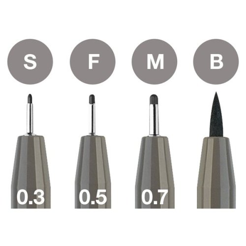 PH neutrálny atrament bez obsahu kyselín, * atrament je odolný proti pôsobeniu slnečného žiarenia, * po zaschnutí vodedolný, nerozmazávajúci sa na papieri, , TYPY HROTOV POPISOVAČOV FABER-CASTELL PITT ARTIST PEN