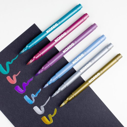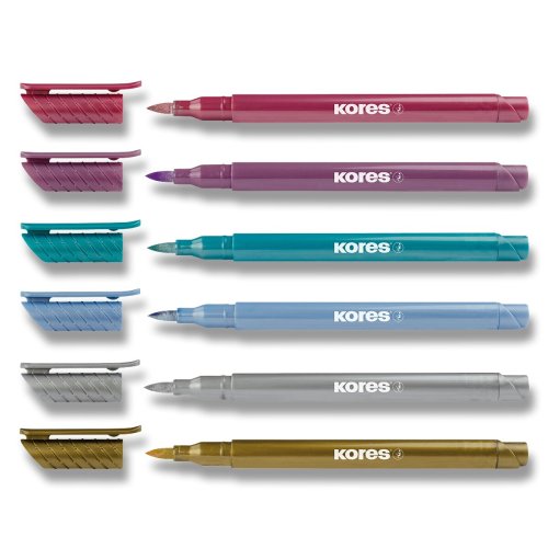 Popisovač Kores Style Brush Marker - Metallic, 6 farieb