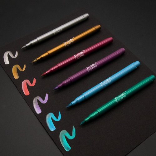 Štetcový hrot metalický atrament a jasný pigment, ľahké vedenie.