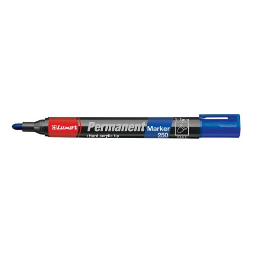 Permanentný popisovač LUXOR 250 modrý s okrúhlym hrotom je možné použiť na väčšinu povrchov.