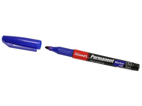 Permanentný popisovač LUXOR 100 modrý s okrúhlym hrotom je možné použiť na väčšinu povrchov.