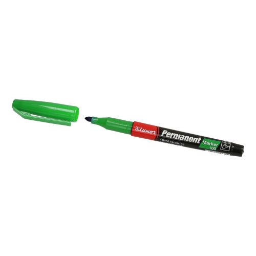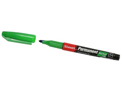 Permanentný popisovač LUXOR 100 zelený s okrúhlym hrotom je možné použiť na väčšinu povrchov.