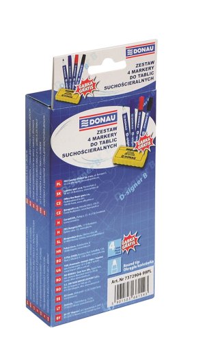 Popisovač na biele tabule Donau s hubkou, 4 ks