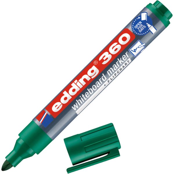 Popisovač na biele tabule s okrúhlym hrotom. Zmazateľný za sucha prakticky zo všetkých nepórovitých povrchov ako napr. smalt, sklo, melamín. Vhodný na písanie na všetky typy bielych tabúľ. Atrament typu cap off umožňuje ponechať popisovače po určitú dobu bez nasadeného uzáveru bez toho, aby vyschli. Popisovač obsahuje pigmentový atrament so slabým zápachom, neobsahujú butylacetát. Šírka stopy 1,5-3 mm.