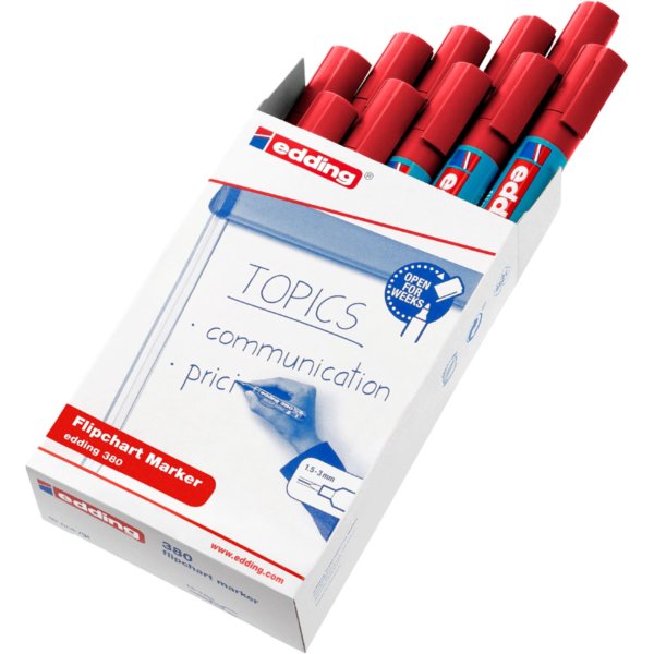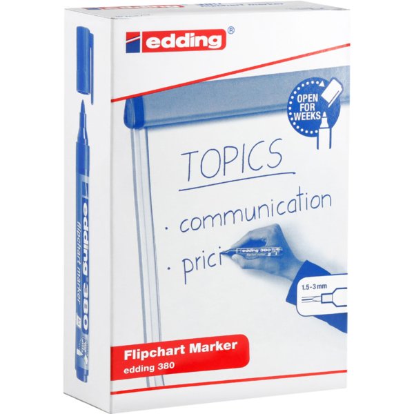 Popisovače na flipcharty Vydržia bez viečka až 6 týždňov Okrúhly hrot Šírka stopy: 1,5 - 3,0 mm Množstvo v originálnom balení: 10 ks