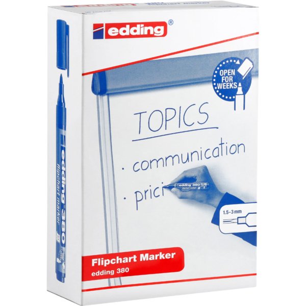 Popisovače na flipcharty Vydržia bez viečka až 6 týždňov Okrúhly hrot Šírka stopy: 1,5 - 3,0 mm Množstvo v originálnom balení: 10 ks