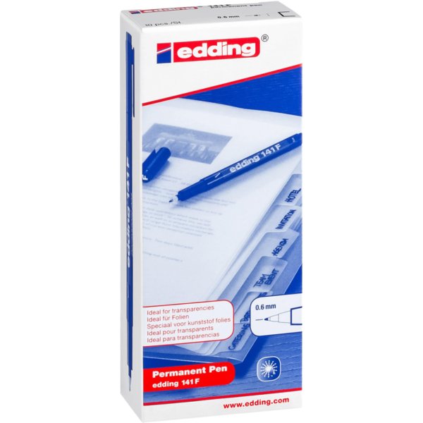 Rýchloschnúci permanentný popisovač na fólie a hladké povrchy Atrament na alkoholovej báze, odolný voči vode Šírka stopy: 0,6 mm Množstvo v originálnom balení: 10 ks