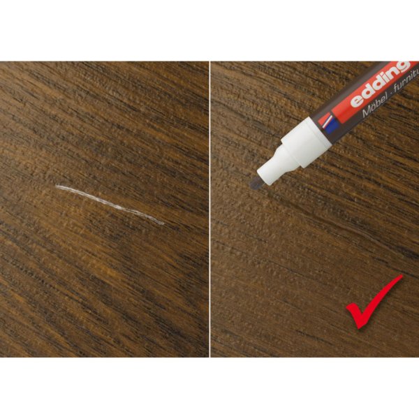• Špeciálny opravný popisovač je vhodný na maskovanie škrabancov a drobných poškodení na dyhe a rôznych druhoch dreva