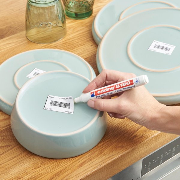 • Popisovač slúži na ľahké odstránenie väčšiny papierových štítkov, etikiet a zvyškov lepidla napr. od diaľničných známok, na podrážkach topánok, na skle a porceláne