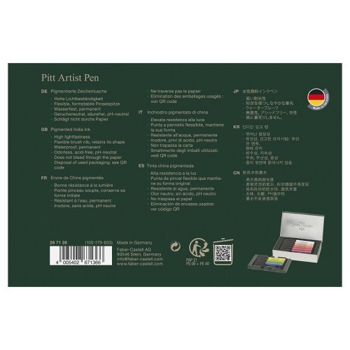Súprava 12 kusov moderných umeleckých popisovačov Faber-Castell Pitt Artist Pen Brush s pružným štetčekovým hrotom, ktorý je ideálny pre tušové skicovanie, kreslenie aj maľbu.
