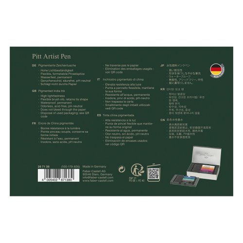 Súprava 12 kusov moderných umeleckých popisovačov Faber-Castell Pitt Artist Pen Brush s pružným štetčekovým hrotom, ktorý je ideálny pre tušové skicovanie, kreslenie aj maľbu.