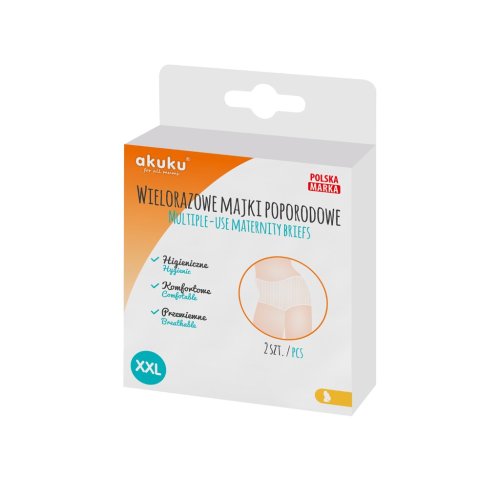 Sieťované popôrodné nohavičky sú určené na opakované použitie, farba biela, hygienické. Sú určené na pranie, veľ. XXL. Nohavičky umožňujú voľný obeh vzduchu, sú vyrobené z priedušného materiálu (sieťoviny), v páse a nohavičkách je jemná guma. Obvod bokov cca 125 cm. Balenie obsahuje 2 kusy.