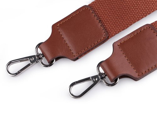 Popruh na tašku s karabínami šírka 3,8 cm - hnedá koňak nikel