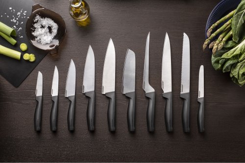 Nôž s rovnou, dlhou čepeľou s hladkým ostrím je ideálny na krájanie pečienky. Čepeľ noža je zo silnej nerezovej oceľovej planžety. Ostrie je zhotovené revolučnou technológiou LZR-EDGE. Tá umožňuje, aby nôž zostal ostrý 4-krát dlhšie ako štandardné nože. Držadlo noža je ergonomicky tvarované s jedinečným 3D vzorom, ktorý zaisťuje perfektné držanie. Výška: 420 mm, dĺžka: 25 mm, šírka: 90 mm, hmotnosť: 110 g.