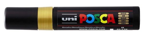Nepostrádateľný popisovač s mimoriadne širokým hrotom je najväčším členom Posca určené pre odborníkov. Posca PC-17K je vďaka veľkosti hrotu obľúbená profesionálmi a umelcami pre tvorenie vo veľkom meradle. Tl. linky: 15 mm extra široký, hrot: akryl/ rovný, telo: plast (PP), škála farieb: 10 vr. metalických. Obsahuje bezkonkurenčný atrament, ktorého zloženie sa od svojho vytvorenia nezmenilo, je mimoriadne bohatý na pigmenty a je extrémne odolný voči atmosférickým podmienkam a plynutiu času. Jeho matné farby majú veľkú hĺbku - umelci ich milujú pre svoje diela a fanúšikovia sú ohromení „magickým“ efektom Posca. Obsahuje jedinečný ventilový mechanizmus, ktorý zaručuje perfektné utesnenie a šetrí farbu v priebehu času. Rovnaký mechanizmus sa používa na naplnenie popisovačov Posca na použitie a na opätovné nasýtenie špičky tak často, ako je to nutné počas tvorenia. Farba je veľmi bohatá na pigmenty, čím vykazuje výsledky vynikajúcej hustoty. Jeho jedinečné zloženie na vodnej báze poskytuje jasné, matné, nepriehľadné farby, ktoré skutočne vydržia. Je bez zápachu. Farby sú vrstviteľné, miešateľné, vodou rozpustné, odolné voči poveternostným vplyvom a ponúkajú neobmedzené kreatívne možnosti. Vyrobené v Japonsku.