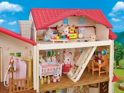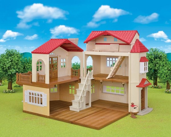 Poschodový dom so svetlami má červenú strechu a béžové steny, ktoré tvoria nádherný domov rodinky Čokoládových zajačikov. Izby sú vybavené 3 svetlami, z ktorých každé je možné zapnúť. Dom môže byť otvorený na hranie 90 stupňov, 180 stupňov aj akýkoľvek iný uhol medzi nimi. Uzavretie domu vytvára vzhľad nádherného domova, bez ohľadu na to, z akého uhla sa naň pozriete, a svetlo sa rozlieva cez okná. Miestnosť druhého poschodia na ľavej strane a strecha na pravej strane sú odnímateľné. Umiestnenie tejto izby na strechu alebo umiestnenie strechy na terasu vytvára veľký trojpodlažný dom, kde sa môžete hrať. Spojte dom so základným poschodovým domčekom a vytvorte veľký, trojposchodový dom ( základný poschodový dom sa predáva samostatne). Umiestnenie nábytku a figúrok zvieratiek do týchto miestností umožňuje ešte zábavnejšiu hru (figúrky a nábytok sa predáva samostatne). Vek: 3+ Dom neobsahuje figúrky a nábytok.
